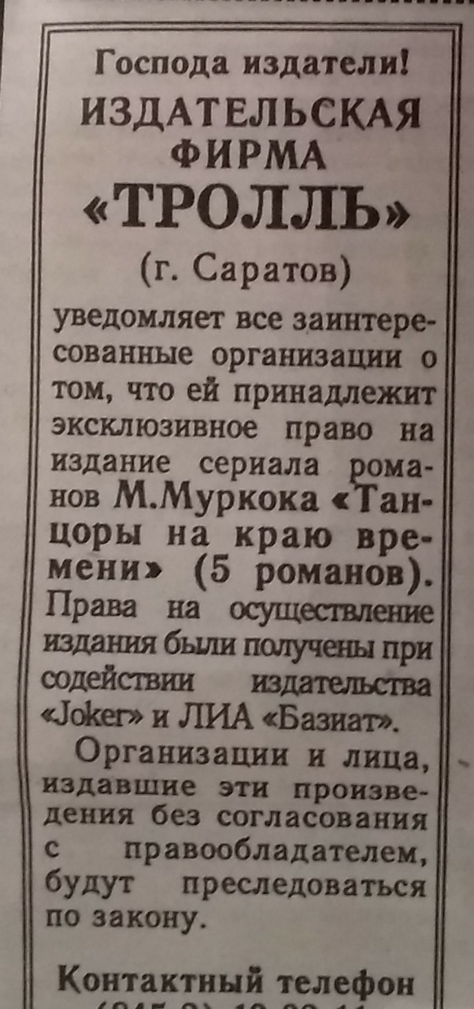 В то время о правах на издание сообщали на страницах "Книжного обозрения" с грозным предупреждением: