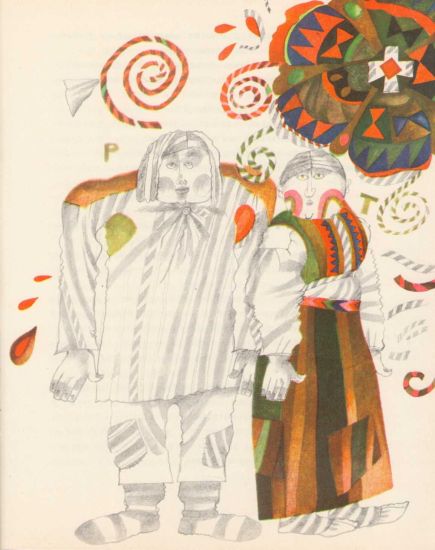 — Карманы, — подтвердила принцесса Пальместрина. — Для жвачки, для рогатки, для плоскогубцев, для транзистора, для подзорной трубы, прожигательных стекол, пугачей, гвоздей, шурупов, гаек, авторучек, микрокалькулятора. Карман для бутербродов. Карман для самодельной чернильной бомбы. — Принцесса вытащила бомбу, но так неловко, что бомба упала к ногам короля. Королева заслонилась шляпой. Король поджал ноги. Взвизгнул: