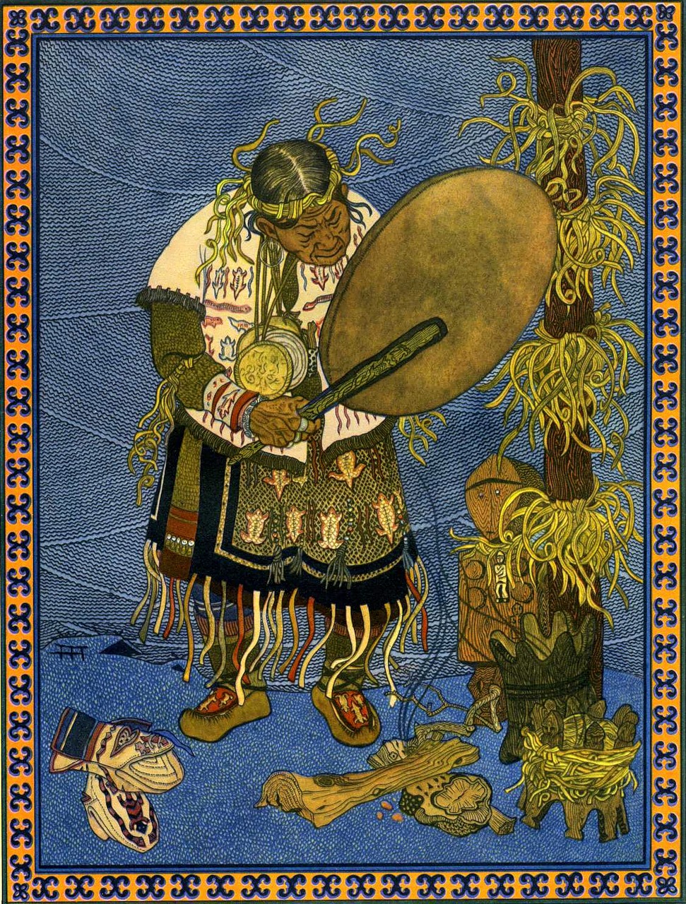 : иллюстрация к сказке "Северный дракон" Генри Джастиса Форда из антологии Лэнга The Yellow Fairy Book.