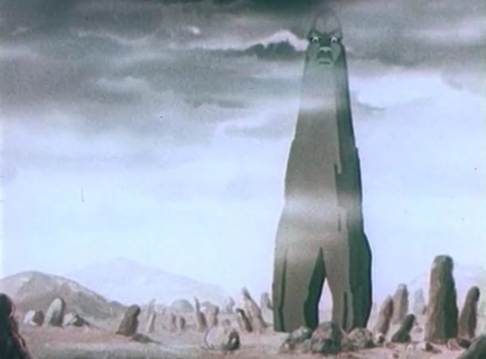 В детстве страшновато было наблюдать за встречей героя с Боко и Какзаму, переправой через огненную реку. Мрачные пейзажи болота и каменной пустыни вкупе с тревожной музыкой Хачатуряна усиливали эффект.я даже уделил мультфильму определённое место в книге "История русского хоррора" ( в разделе "Элементы хоррора в советской анимации").