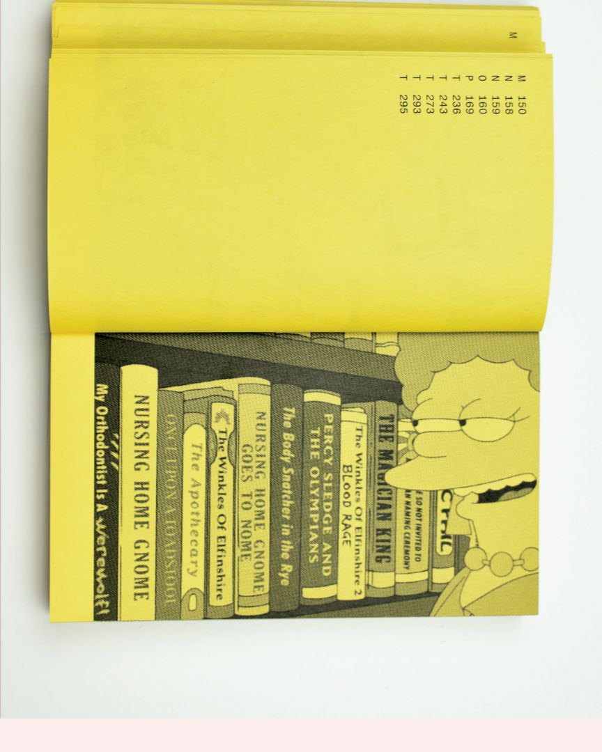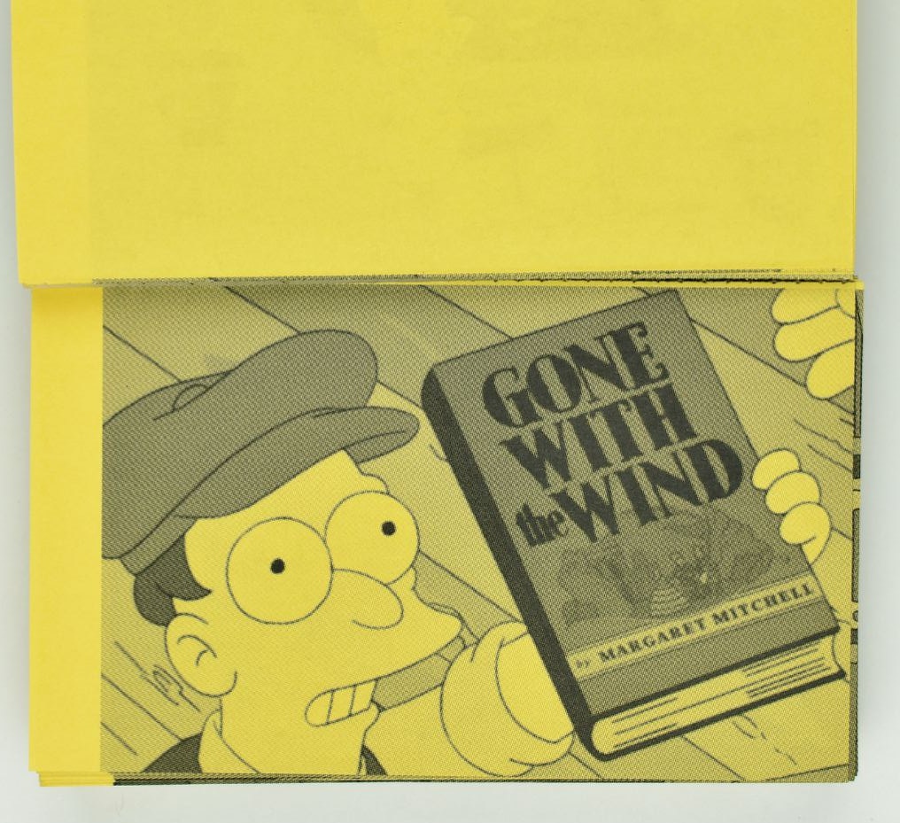 Французский графический дизайнер и преподаватель Лионской школы изящных искусств Оливье Лебрен (Olivier Lebrun) внимательно просмотрел более 600 серий "Симпсонов", сделал чёрно-белые скриншоты появляющихся в сериале книг и выпустил в 2012 году маленький артбук "Карманный справочник по книгам из Симпсонов в алфавитном порядке" (A Pocket Companion to Books from The Simpsons) в швейцарском издательстве Rollo-press. Книга вышла на жёлтой бумаге и на английском языке (хотя текста в издании фактически нет). Фанатам сериала книга понравилась и через год появился "Ещё один справочник по книгам из Симпсонов в алфавитном порядке" (Another Companion to Books from the Simpsons in Alphabetical Order). А в 2018 году вышел "Итоговый справочник по книгам из Симпсонов" (A Final Companion to Books from the Simpsons), содержащий более 300 изображений — почти в два раза больше, чем в самом первом издании. "Итоговый справочник" переиздан в расширенном виде в 2020 году.