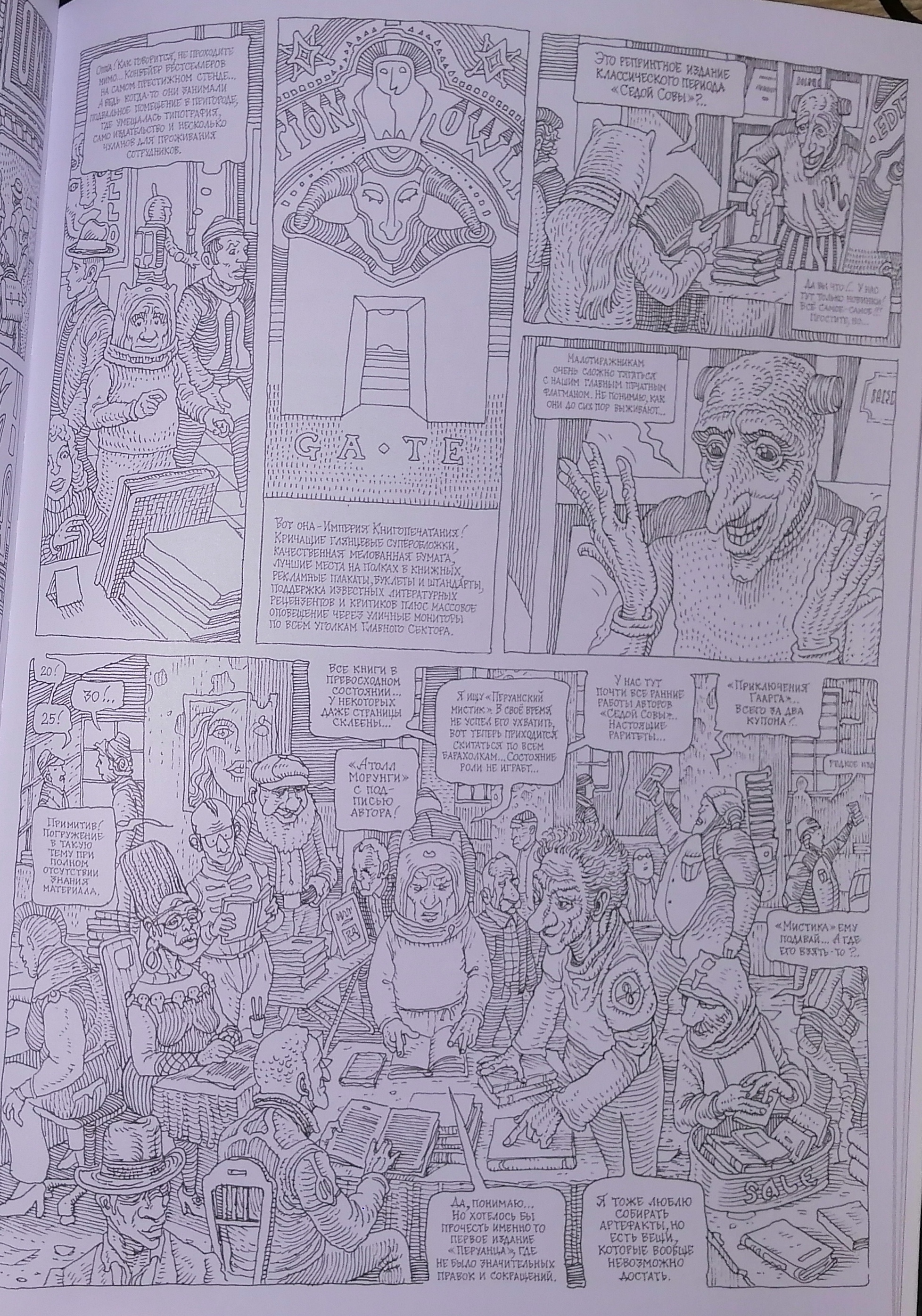 Интересно, что мне изображение на обложке в первую очередь напомнило о советском мультфильме "Тайна третьей планеты": я увидел тут профессора Верховцева, Весельчака У и Говоруна. Потом вспомнил о малоизвестном у нас болгарском комиксе по Булычёву "Девочка с Земли" Р. Чаушева. И лишь после этого появились ассоциации с работами Мёбиуса.
