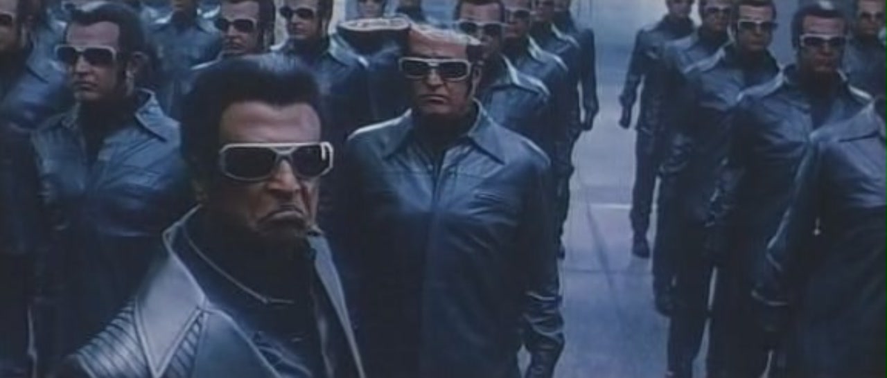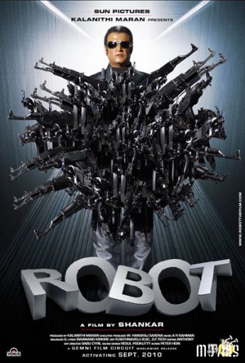 Скажу сразу: фильм произвёл впечатление. "Мой разум удивлённый" кипит до сих пор, столь эклектичного фильма мне давненько не приходилось видеть (и приходилось ли?). Ядрёная смесь из комедии со своеобразным "индийским" юмором, крутейшего жёсткого боевика, традиционных песен-плясок, драмы, стёба, романтической истории, научной фантастики и элементов сюрреализма. Суть такова: гениальный индийский учёный Васе ("по-индийски он Васе, а по-русски Вася") изобретает сверхпродвинутого человекообразного военного робота, который, естественно, как две капли воды похож на своего создателя. Робот военный, но первым делом его почему-то начинают обучать танцам — что же ты за индийский робот, если не умеешь танцевать, тем более, ничто не мешает. Затем следует целый ряд юмористических ( и не очень) событий, связанных с внешней схожестью почти всемогущего робота с простым человеком, в том числе весёлый мордобой плохих людей а-ля Джекки Чан и героическое спасение хороших — а-ля Человек-паук. Робот оказывается недостаточно сообразительным и тогда его создатель вносит изменения в программу, изменения, позволяющие роботу чувствовать.