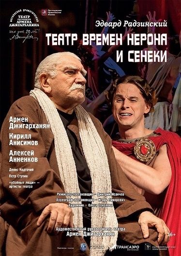 Спектакль "Театр времен Нерона и Сенеки" Случайно увидев афишу спектакля, на которой значилось имя А. Джигарханяна, я незамедлительно купила билет. 14 лет назад, живя в ЗАТО в Мурманской области, я имела счастье пойти на спектакль с этим великим актером и даже пообщаться с ним после спектакля в гримерке. Поверьте, счастье невероятное для того захолустья, в котором я жила. Теперь же, живя в культурной столице, я не могла пропустить гастроли театра Джигарханяна.