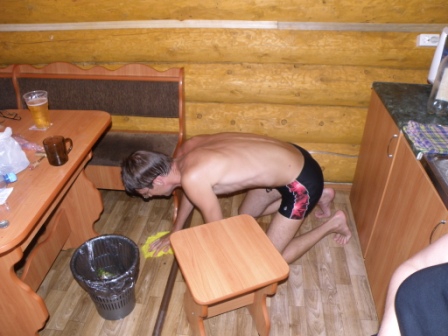 Вот она, омерзительная харя дедовщины. Человек моет пол носовым платочком.