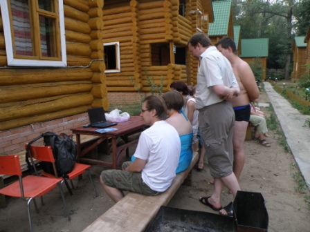 Доклады закончились, но образовательная программа продолжилась. Вот наиболее продвинутая группа лаборантов пришла посмотреть на настоящий ноутбук. Дабы избежать культурного шока, ноут решено было не включать, что не уменьшило их изумленного восхищения. Решено на следущую встречу привести еще зеркалец и бус...