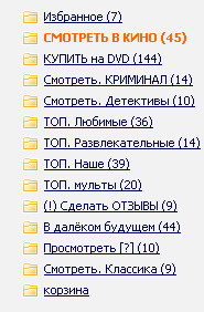 На конкретном примере мы рассмотрели как создать папку "Смотреть в кино", а разных полезных папок можно насоздавать множество, к примеру — "Смотреть артхаус", "Возможно посмотреть", "Купить на DVD", "Скачать в сети", "Любимые фильмы, "Любимые мультфильмы" и т.д. Каждой папке не забывайте задать нужные параметр в подписках и если даже фильм старый, то подписавшись на выход его на DVD, вы будете знать эту информацию, если покупаете диски.