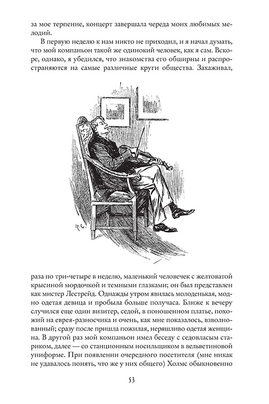Я уже писал в своих предыдущих обзорах (тут и тут) о том, какие иллюстрации будут использованы в этой книге: это полный комплект иллюстраций Сидни Пэджета, сопровождавших исходную публикацию «Приключений Шерлока Холмса» в журнале «Стрэнд», а также иллюстрации Рихарда Гутшмидта к одному из первых немецких изданий «Этюда в багровых тонах». Не буду пересказывать содержание моих предыдущих текстов, упомяну лишь одну цитату из речи Артура Конан Дойла, произнесенной на банкете компании «Столл» (28.09.1921 г): «...Если придуманный мной не бог весть какой персонаж — Шерлок Холмс — существует дольше, нежели он, вероятно, того заслуживает, то это заслуга не только моя, но и причастных к его созданию. Первоначально рассказы иллюстрировал Сидни Пэджет — и настолько удачно, что изображенный им типаж был безоговорочно принят всей читающей по-английски публикой...» (см. стр. 488 нашей книги). Можно дополнить слова Конан Дойла: не только читающей по-английски, переводы рассказов Конан Дойла на другие языки неоднократно издавались с иллюстрациями Сидни Пэджета и везде встречали восторженный отклик. Чего, к сожалению, нельзя сказать о России – у нас произведения А. Конан Дойла с этими иллюстрациями публиковались всего пару раз, да и то в последние лет десять.