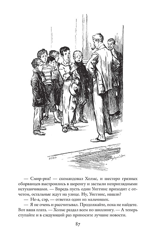 Образцы страниц из "Этюда в багровых тонах" с иллюстрациями Рихарда Гутшмидта: