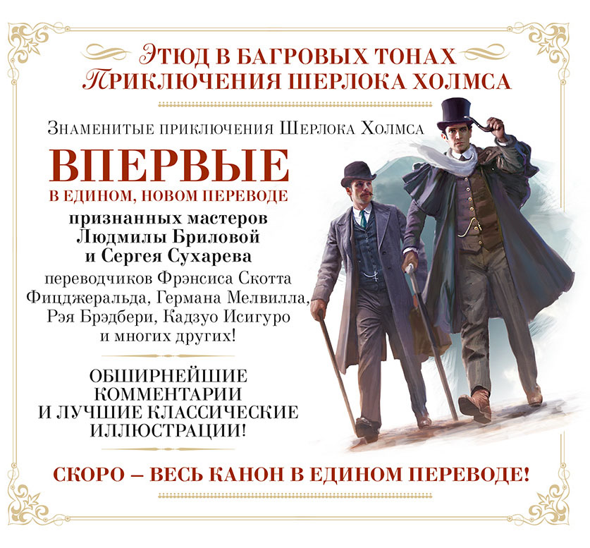 Как ранее было анонсировано, до конца этого года в издательстве «Азбука» выйдет первый том из давно готовящегося четырехтомника рассказов и повестей Артура Конан Дойла о приключениях знаменитого сыщика Шерлока Холмса. Это будет воистину уникальное издание: все произведения цикла переведены заново двумя опытными переводчиками, работающими в тесном контакте, у всех произведений один редактор, комментарии ко всем произведениям пишет один человек. При этом в каждый том, наряду с самими произведениями цикла, включено множество дополнительных материалов: предисловия издателей к ранним публикациям, фрагменты воспоминаний Конан Дойла, касающиеся тех или иных произведений, некоторые интервью писателя, в которых рассказано о каких-то интересных фактах, относящихся к Шерлоку Холмсу. Плюс каждый том снабжен обширнейшими комментариями и богато иллюстрирован лучшими классическими рисунками. Все это великолепие будет издано в серии «Мир приключений», что гарантирует вам высококачественное полиграфическое исполнение и отличную белую бумагу.